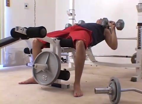 Полуголая сисястая девка сосёт хуй и ебётся с парнем на тренажёре
