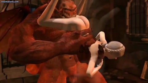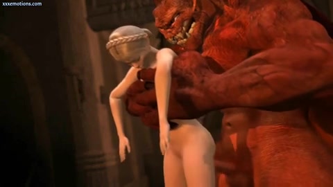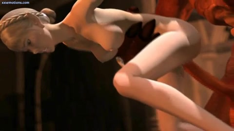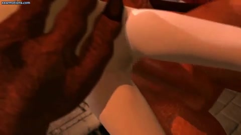 Здоровый монстр отлизывает киску и трахает аниме девушку в киску