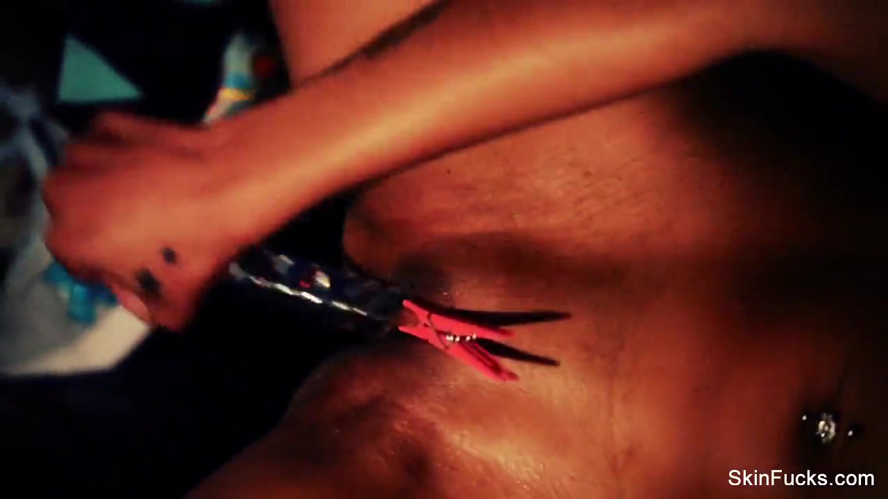 Мулатка Skin Diamond зажимает клитор прищепкой и ебёт фаллосом
