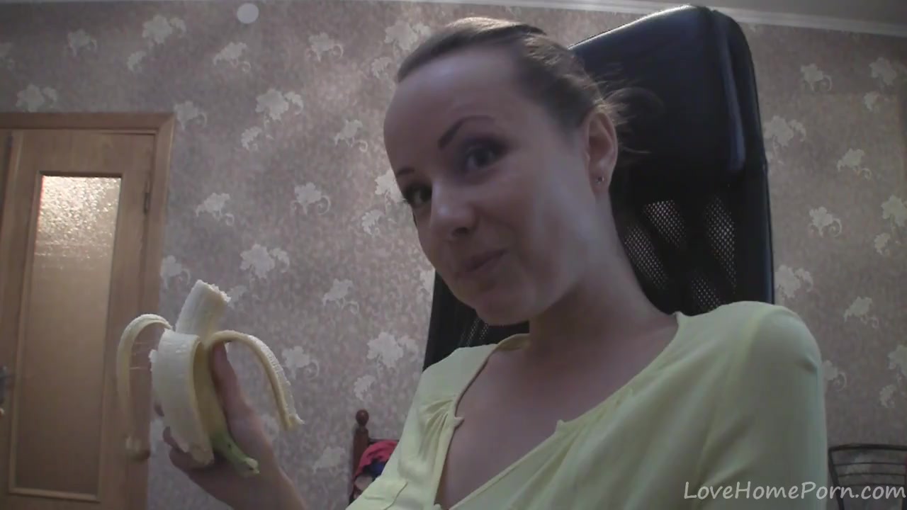 Симпатичная девка кушает и отсасывает банан в онлайн порно чате