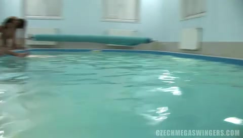 Возбуждённые свингеры занимаются сексом в бассейне и возле него