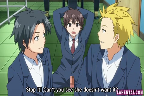Ребята заставляют рыжую хентай чертовку отсасывать и трахаться
