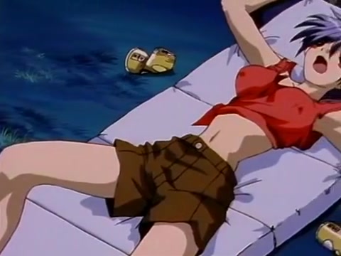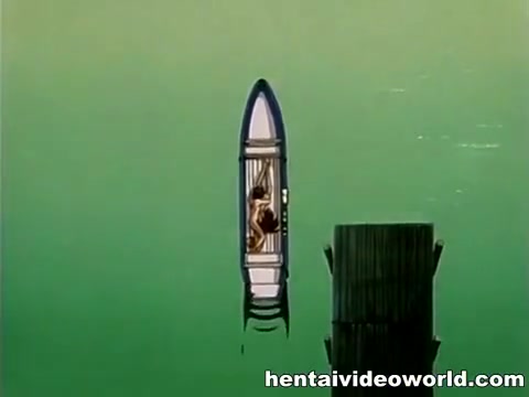Аниме пара занимается сексом на плывущей лодке под фейерверком