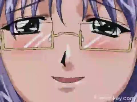 Очкастая хентай шлюха дрочит сиськами и отсасывает члены парням