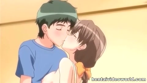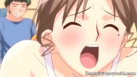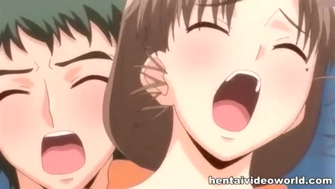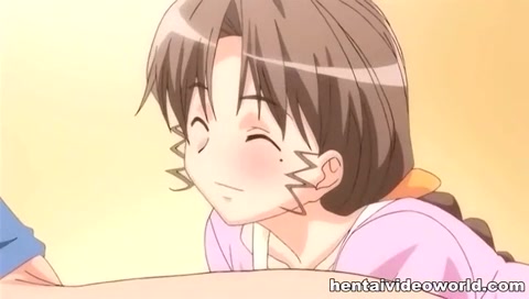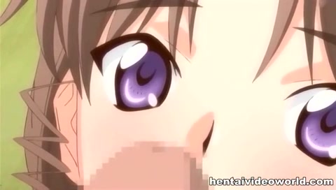 Грудастая хентай тёлка с косой увидела член и захотела его сосать