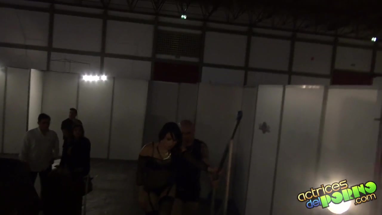 Тёлка в чёрных чулках Sara May ебётся с парнем на сцене секс шоу