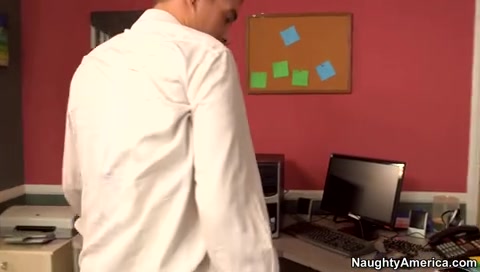 Кудрявая мулатка Misty Stone трахается в офисе с белым коллегой