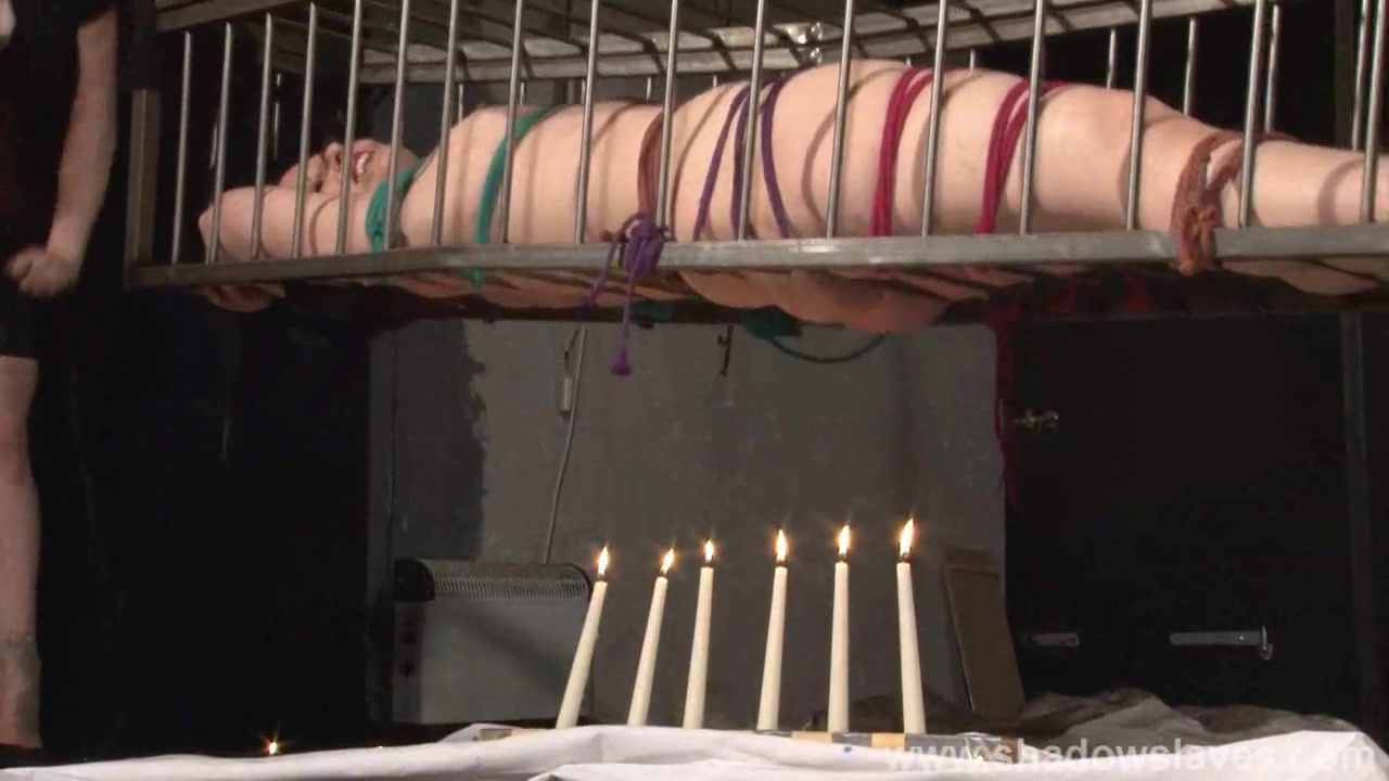 Пламя свечей обжигает голое тело связанной девки Caroline Pierce