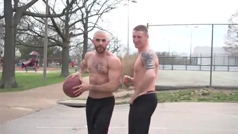 Голубой парень с тату отсасывает другу и ебётся раком на кровати