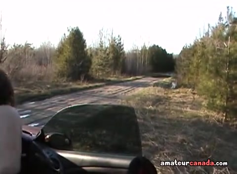 Толстая девица с огромной грудью мастурбирует в машине в лесу