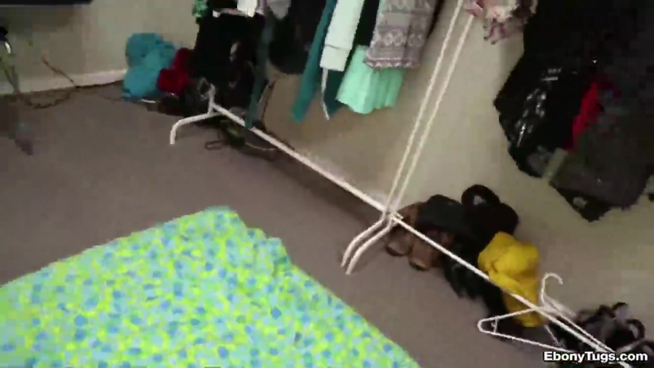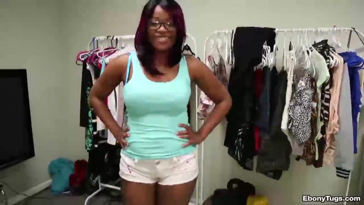 Афроамериканская девка в очках разделась и подрочила белый хуй