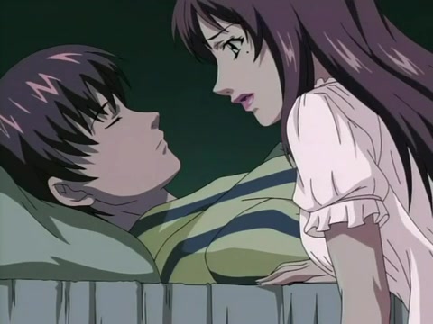 Зашёл в спальню к сисястой хентай женщине и оттрахал на кровати