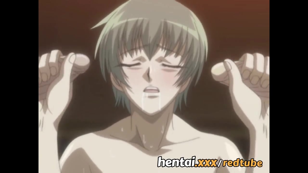 Грудастая хентай девка прыгает на члене и дрочит двум мужчинам