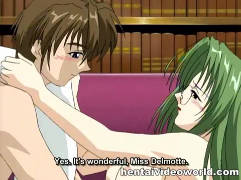 Оттрахал в библиотеке очкастую хентай девку с зелёными волосами