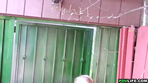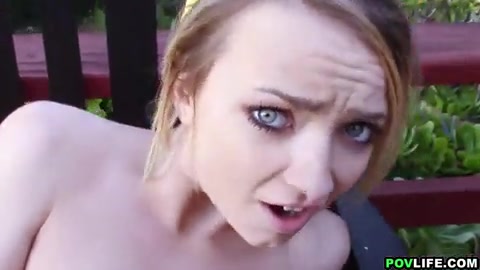 Симпатичная блондиночка отсасывает и трахается раком на улице