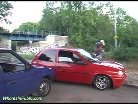 Грудастая девка на автостоянке ебётся с парнем в позе наездницы
