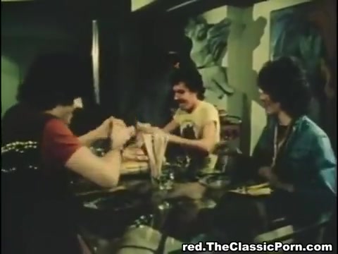 Брюнетка по команде отсасывает парням члены в винтажном порно