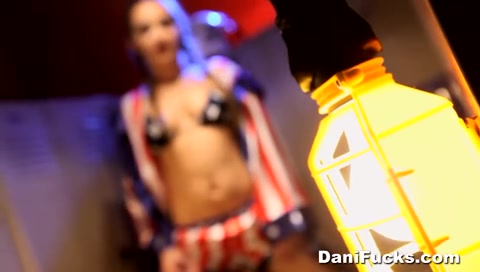 Американская девушка Dani Daniels мастурбирует киску в гардеробе
