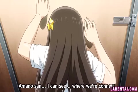 Грудастая хентай подружка отсасывает и дрочит сиськами в туалете