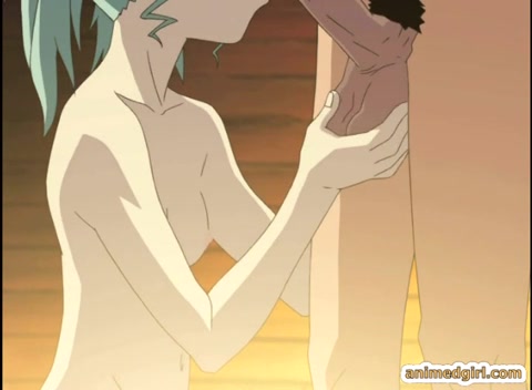 Хентай девчонка с маленькой грудью берёт в ротик здоровый член