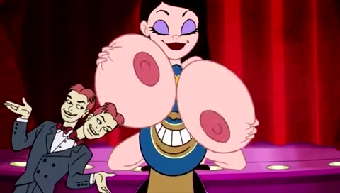 Грудастая аниме брюнетка раздевается и танцует стриптиз на сцене