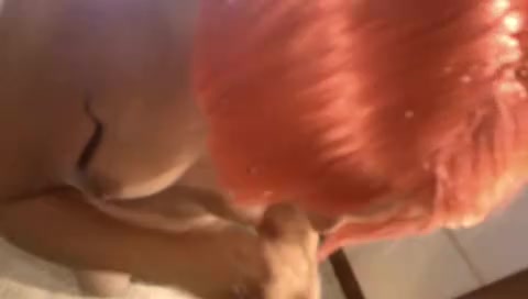 Девка с розовыми волосами отсасывает и дрочит в домашнем порно