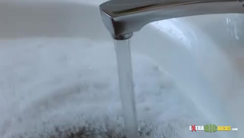 Гомосексуальный парень дрочит свой член в ванне с горячей водой