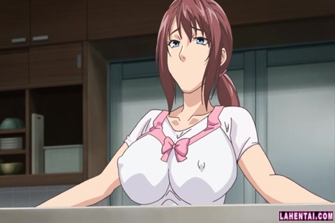 Сисястая хентай красотка раздевается и ебётся с парнем на кровати