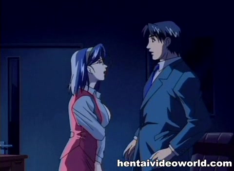 Начальник соблазняет свою грудастую хентай секретаршу в очках
