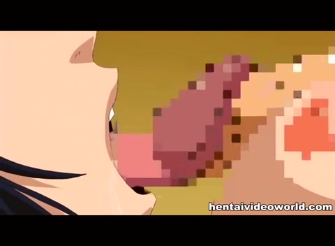 Облизал большую грудь хентай брюнетки и отодрал девку на полу