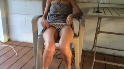 Худая выпившая дамочка снимает трусики и показывает свою пизду