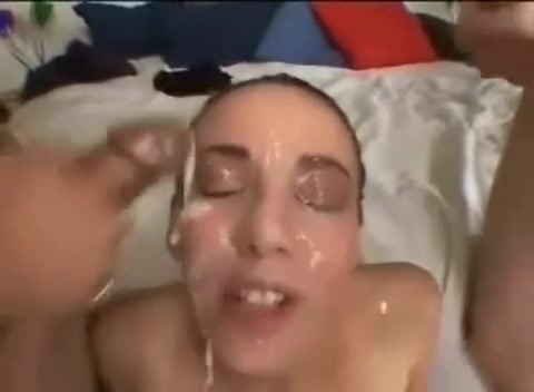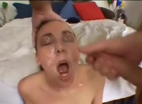 Парни поливают спермой милое лицо своей сексуальной подружки