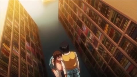 Очкастая хентай девка с косичками занимается сексом в библиотеке