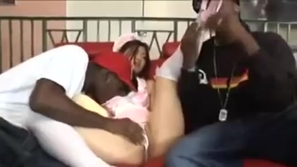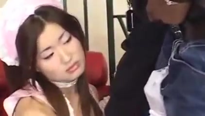 Горячая азиатская горничная удовлетворила двоих чёрных мужиков