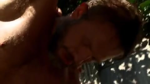 Два бородатых гея забежали в душ во дворе и начали там трахаться