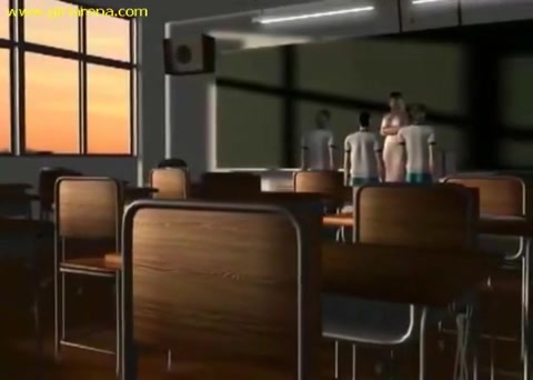 Сиськастая 3D секретарша в очках трахается с компанией парней