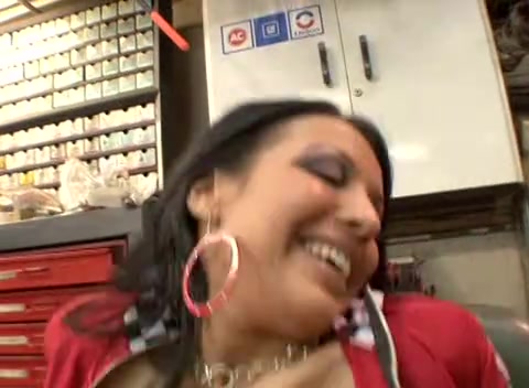 Девка из автомастерской Maya Gates отсосала и дала трахнуть в зад