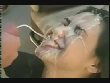 Мощное семяизвержение на лицо сексуальной молодой брюнеточки