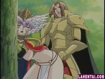 Рыцарь даёт аниме девчонке отсосать член и трахает раком в лесу