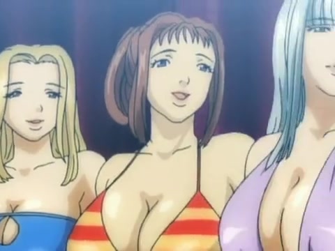 Грудастая хентай девушка в бикини занимается сексом с очкариком