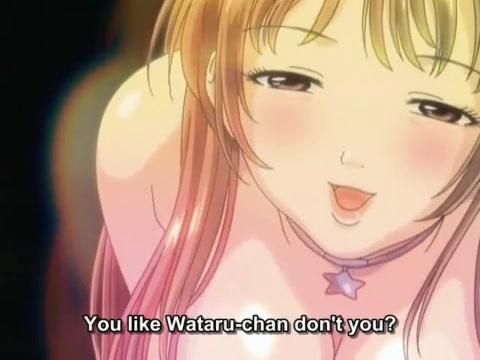 Аниме блондинка дала очкарику полизать сиськи и подрочила член