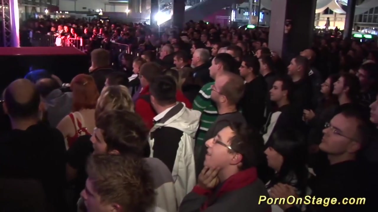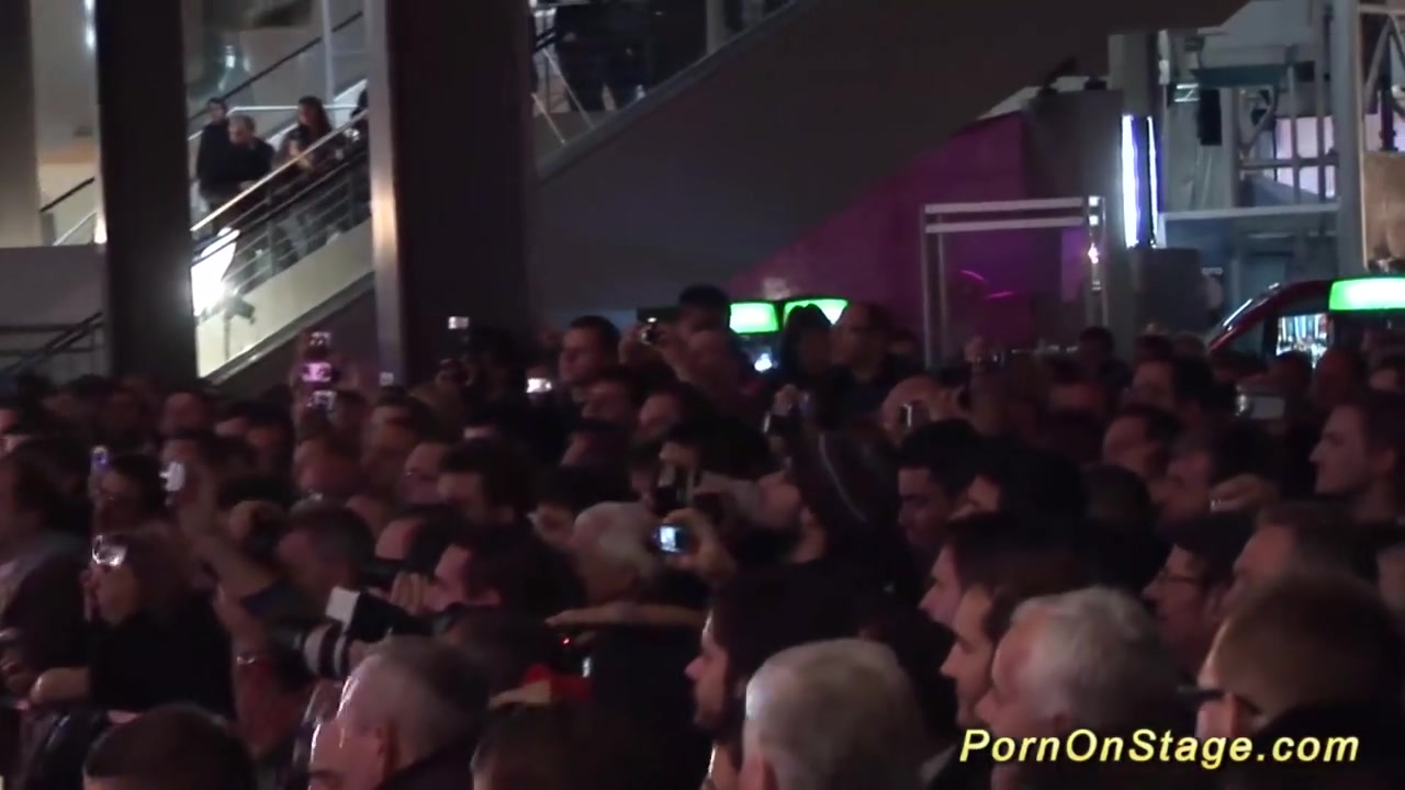 Красивое лесбийское секс шоу двух блондинок на большой сцене