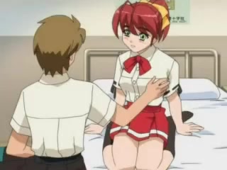Милая хентай девушка с красными волосами ебётся со своим парнем