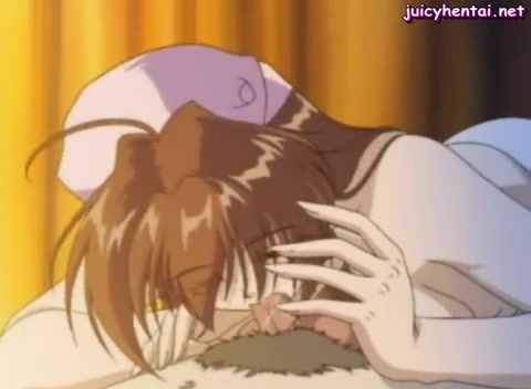 Развратная хентай медсестра села на парня и подрочила сиськами