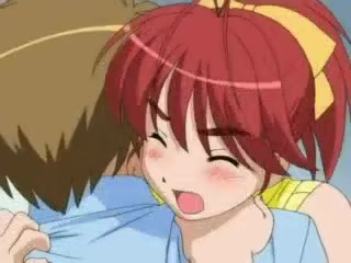 Паренёк трахает на кровати сразу двух похотливых хентай девушек