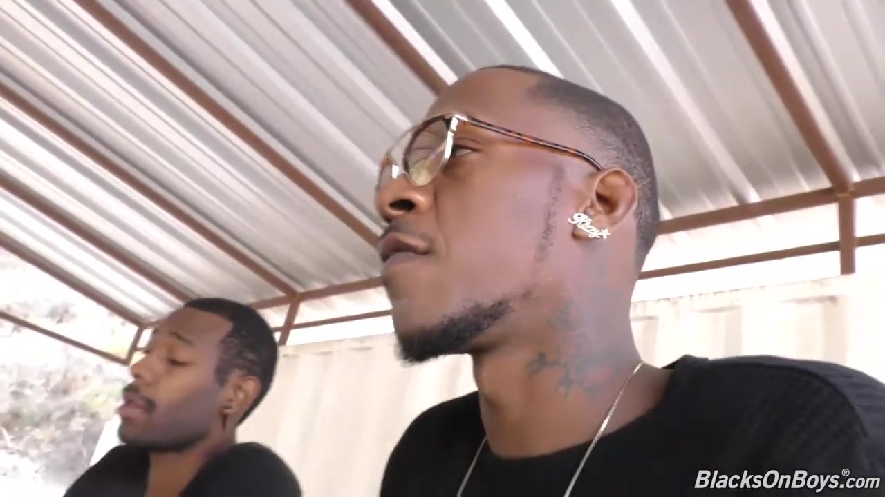 Белый парень трахается с двумя чёрными геями возле автомобиля