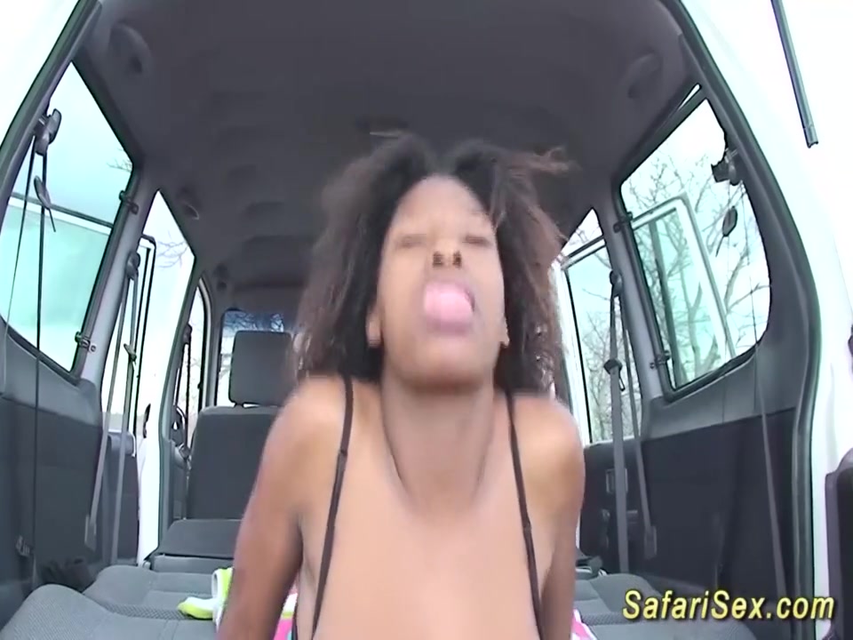 Сисястая африканская девушка ебётся с белым мужиком в машине