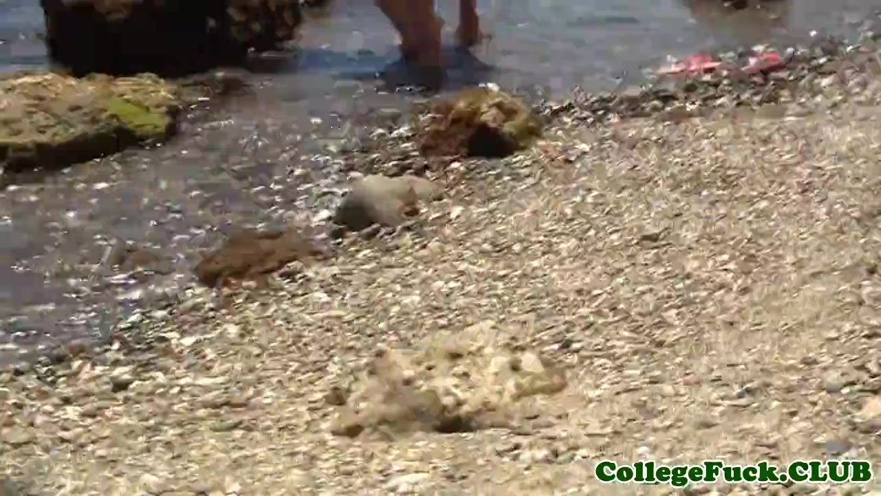 Обнажённые девки играют на пляже с мячом и трахаются с парнями