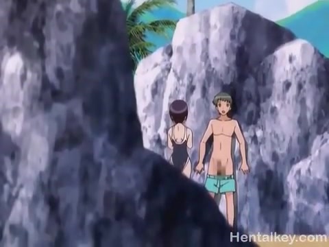 Очкастая хентай девка на пляже сняла с парня плавки и подрочила