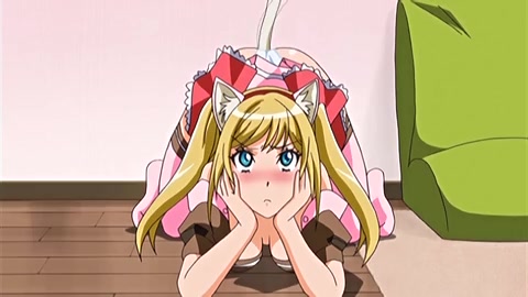 Сексуальная хентай девушка в костюме кошки ебётся с очкариком